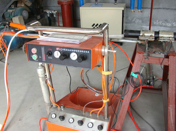 管道內噴粉機大多數噴霧向四周擴散噴開,專業的長桿內壁噴槍或內壁涂裝器在移動過程中管壁周圍都被噴上液料。內壁涂裝器或內壁噴槍要和配套的液料輸送泵和料管成套使用,液料輸送泵將漆料輸送到內壁噴槍或內壁涂裝器,經過特殊的噴咀霧化。